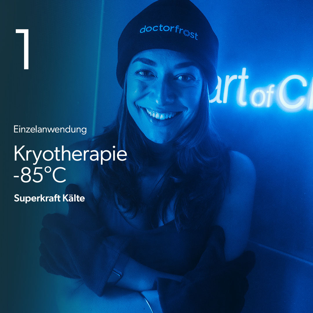 Bei 100% trockenen -85°C Grad aktiviert die Kältetherapie das Immunsystem, steigert die Alltagstauglichkeit und sorgt sofort für spürbar bessere Laune.